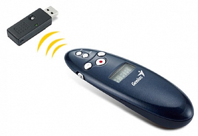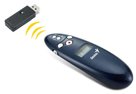 Genius представляет беспроводной пульт GM-Media Pointer 2.4G USB для проведения презентаций. Благодаря беспроводной технологии устройство гарантирует комфортную работу без спутанных проводов в радиусе 15 метров.