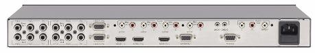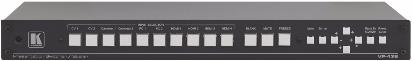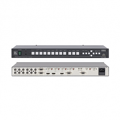 Kramer VP-728 — девятивходовой коммутатор аналогового и цифрового видеосигнала, небалансного стереофонического аудиосигнала и S/PDIF. Он выполняет повышающее и понижающее масштабирование входного композитного видеосигнала, s-Video (Y/C), компонентного видеосигнала (YUV), HDMI, компьютерного графического сигнала, а также формирует видеосигнал из jpeg-файлов. Результат преобразования выдается в формате компьютерного графического сигнала или HDTV на разъемы HDMI и HD-15. Коммутация источников выполняется с использованием технологии FTB™ (fade-thru-black, переход через гашение), обеспечивающей отсутствие помех.