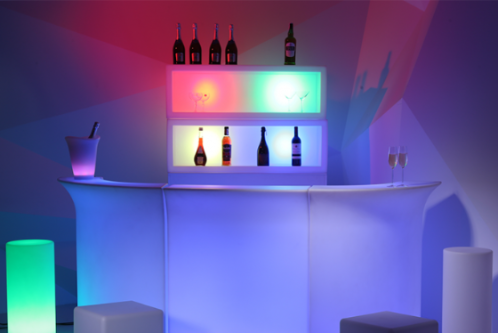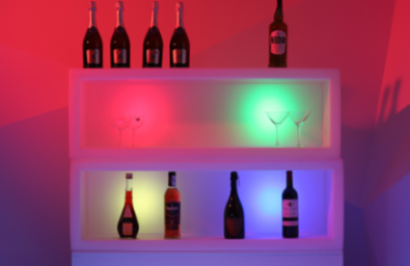 Открытые барные витрины подчеркивают уникальность нашего мероприятия. Они могут служить для выкладки разной продукции. Светящие барные витрины прекрасно сочетаются с барной стойкой. Каждый куб может светиться разными цветами, создавая прекрасную атмосферу на мероприятии.