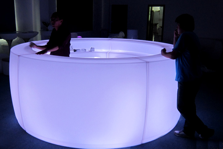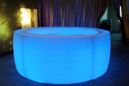 Круглая барная стойка с подсветкой - стильное и практичное решение для вашего мероприятия. Диаметр в 3 метра позволит разместить достаточно барменов и оборудования, для качественного обслуживание гостей вашего праздника.