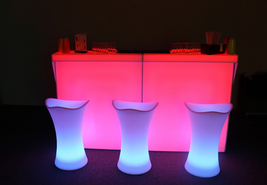 Барные стулья с подсветкой отлично будут смотреться в оформлении вечеринок, фестивалей, и концертов. Барные стулья используются вместе с барными столами.