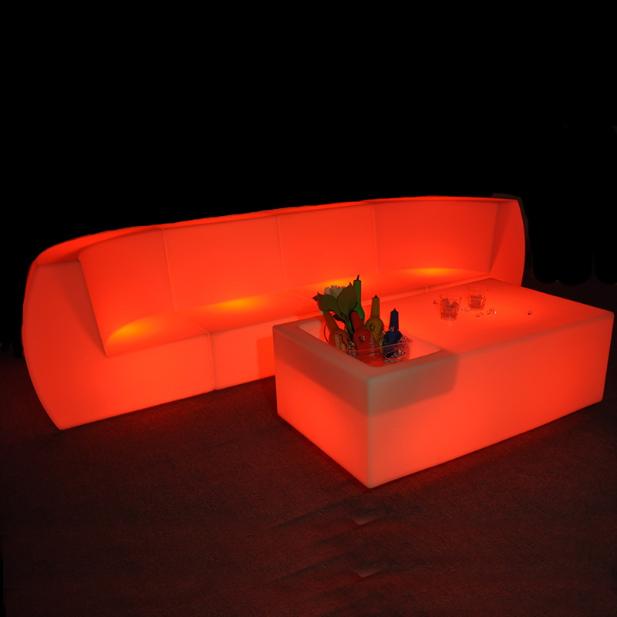 Led диван из белого прочного пластика, который делает мебель прочной. Светодиодная мебель дополнит дизайн вашего помещения, заполнит пустоты пространства, внесет элемент новизны и яркие акценты.