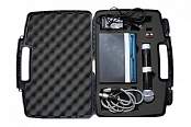 В комплекте: радиомикрофоны SM58 – 2шт, база UHF 24, пластиковый чемодан для переноса всей системы, держатели для микрофонов 2шт., чехлы, аксессуары.
