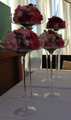 В прозрачных стеклянных вазах отлично смотрятся как один изящный цветок или даже крупный красивый лист растения, так и сочетание различных элементов декора: цветами, стеблями и листьями, фруктами и пряностями, морской галькой и ракушками, деревянной стружкой и разноцветным песком, акриловыми кристаллами и камушками.