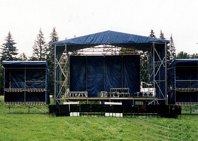 Отличный вариант при организации мероприятий с музыкальным сопровождением. На сцене сможете разместить вокально-инструментальный коллектив. Если событие будет проходить под открытым небом, то нужно брать в аренду сцену с крышей, и никакая погода не испортит праздник.